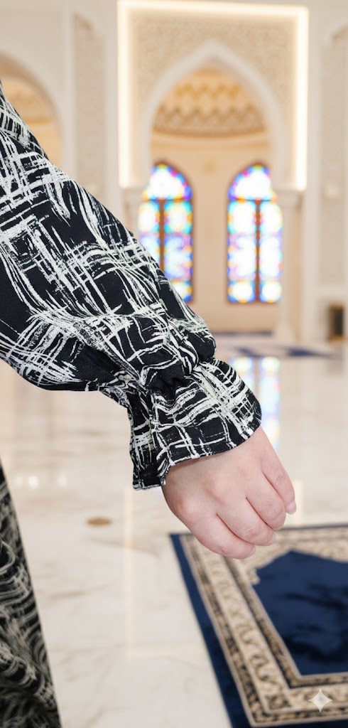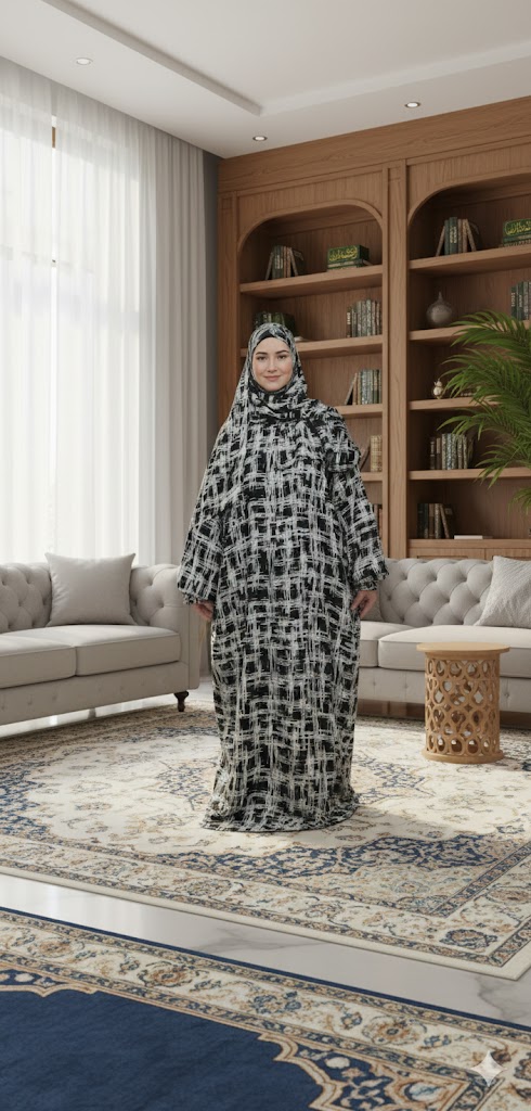 روب صلاة قطن أسود مخطط